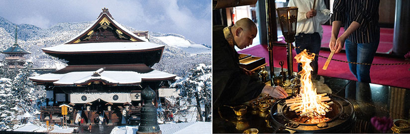 Kahvaltının ardından, "Japonya'nın Çatısı" olarak bilinen Nagano vilayetine doğru yola çıkış. Üç saatlik bir yolculuğun ardından, vilayete bağlı ve kalesi ile ünlü Matsumoto'ya hareket. Beş katlı ana kulesi ile Matsumoto Kalesi, "Japonya'nın Ulusal Hazineleri" olarak belirlenen beş kaleden biridir. Koyu ahşap cephesi sebebiyle halk arasında "Karga Kalesi" diye anılır. Kazumasa Ishikawa'nın yönetimi altında 1594 civarında tamamlanan yapı, Japonya'da günümüze dek ayakta kalan ve Edo döneminden (1603-1868) önce yapılan 12 kaleden en eski beş katmanlı ve altı katlı olması sebebiyle önem arz eder. Matsumoto Kalesi'nin efendilerine 1600'lü yıllardan itibaren Akutagawa Ailesi'nden ninjalar hizmet etmiş. Akutagawa Klanı, ninja dünyasının en ünlü dövüş sanatının tekniklerinden biri olan, "Gizli Teknikler" ve "Sessiz Savaş" gibi anlamlara gelen shinobi-no-jutsu'nun (ninjutsu) Koga (Koka) stiline bağlıydı. Yerel bir restoranda Öğle yemeğinden sonra, dağlık bir bölgede yer aldığından birçok kaplıca ve kış sporları tesisine ev sahipliği yapan Nagano'ya hareket. Görkemli zirvelerle çevrili vilayetin başşehri Nagano, 1972'deki Sapporo Olimpiyatları'ndan 26 yıl sonra Şubat 1998 yılında düzenlenen ve Japonya'da yapılacak ikinci Kış Olimpiyatları olan XVIII. Kış Olimpiyat Oyunları ile ünlüdür. Nagano aslında, 1707 yılında yeniden inşa edilen, büyük önem taşıyan Zenkoji Tapınağı etrafında gelişen bir şehridir. VII. yüzyıla dayanan tapınak, Budist dininin Japonya'ya ilk tanıtıldığı dönemde Kore'den ülkeye getirilen ilk Budist heykelini barındırmaktadır. Sonsuz Işık ve Sonsuz Yaşam Budası Amitabha heykeli VI. yüzyılda Budizm karşıtı bir grup tarafından gömülmüş. Neyse ki, Yoshimitsu Honda tarafından kurtarılarak Zenkoji Tapınağı'na yerleştirilmiştir. 654 yılından bu yana tüm gözlerden (baş rahibi dahil) saklanarak gizlilik içinde kalmıştır. Kamakura döneminde (1185-1333), Amitabha'nın halk için bir somutlaştırma ve ibadet figürü olarak hizmet edebilmesi için ikinci bir heykeli yapılmış. "Maedachi Honzon" olarak bilinen bu heykel, yedi yılda bir adanmış "Gokaicho" yani açığa çıkarma töreni sırasında halka sergilenmektedir. Tapınağın heybetli ana binası ulusal hazine niteliğindedir. 1400 yıldan uzun bir süredir hacıların ve ziyaretçilerin ilgisini çeken Zenkoji'yi Japonya'daki diğer tapınaklardan farklı kılan, başka bir yerde bulmakta zorlanacağınız çeşitli ruhani deneyimlerin yapıldığı bir yerdir. Burada hem zihni hem de bedeni arındırırken negatif enerjileri yok etmek için "Gomataki" ateş ritüeline katılmak için nadir bir fırsatınız olacak. Üzerinde dualar ve dilekler yazılı tahta çubukları (Goma-gi) yakan rahip, Budist vecizeleri olan "Sutra"ları tutkuyla okudukça ateş gittikçe büyür. Ayrıca "Maccha" çay törenini de deneyimleme olanağınız da olacak. Çay töreninde ağırlıklı olarak Zen Budizmi'nin etkisi görülür. "Zen", diğer Budist okulların arasından aydınlanma amacıyla yapılan meditasyona verdiği önemle ayırt edilir. Meditasyon anlamına gelen Çince "Zuochan" ve Japonca "Zazen" kelimeleri Ch'an/Zen kelimesinden türetilmiştir. Bu nedenle Zen, Budizm'in bir koludur. Törenin amacı bu yolla ruhu aydınlatmaktır ve doğallığın yanı sıra sükunet, sadelik estetik ve zarafetle örülü bir arınma sürecidir. Eski Japonların dediği gibi, "cha-Zen ichimi" yani "Zen ve çay aynı tada sahiptir". Panoramik Nagano şehir turundan sonra şehir merkezindeki otelimize yerleşme. Akşam yemeği ve geceleme otelde.
