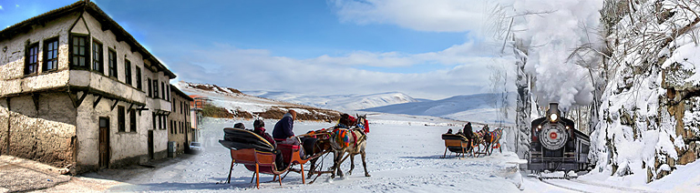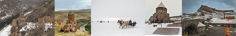 Kars her daim, Anadolu'nun Kafkaslar'a açılan kapısı olarak görülmüş; şehrin günümüzdeki mimari yapısı da, Rus işgal döneminden kalan binalardan dolayı bu atmosferi çok iyi tamamlamakta. Kış aylarında buz tutan Çıldır Gölü, Rus yazarların romanlarından çıkmış bir tasfir gibidir. Ani Şehri'nin harabeleri ise, beyaz örtünün altında fışkıran taş duvarların kızıl renkleriyle, romantik bir ressamın fırçasından süzülen kış izlenimlerini anımsatır. Tabii, bütün bunlara, Kars mutfağının lezzetlerini de katınca, böyle bir seyahatin keyfi anlatılamaz... Doğu Ekspresi ile Kars - Erzurum arasında yapacağınız kısa bir yolculukla kış manzaralarını daha geniş bir açıdan görme fırsatı ve yolculuğu Erzurum'da bitirerek, şehrin tarihi yapısını ve mimari miraslarını tanıma imkanı bulacaksınız.
