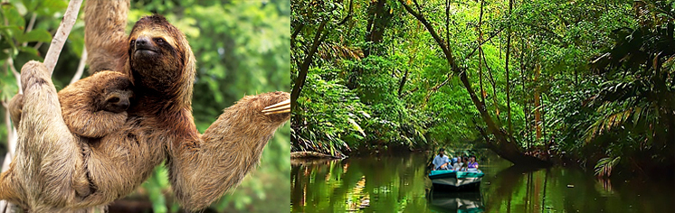 Sabah, Tortuguero Millî Parkı'nı ve zengin ekosistemini keşfetmek üzere nehirlerin kollarında ve kanallarda tekne gezisi. Parkın nemli ve harika tropikal ormanı ve sulak alanları zengin bir canlı çeşitliliği barındımakta: 400 den fazla ağaç ve 2 bin 200 bitki türü; çok sayıdaki rengarenk kurbağa türü, yılan boyunlu kaplumbağa gibi ikiyaşamlı hayvanlar; kertenkele, iguana ve cayman timsahı gibi sürüngenler; değişik balık türleri; toprağı karıştırmaya yarayan uzun ve esnek burunlu coati; yapışkan diliyle karınca yiyen tamandua; tavşan ve fare karışımına benzeyen kemirgen agouti; aralarında çok sayıda egzotik kuşların yer aldığı 300 den fazla kuş türü… Beyaz balıkçıl, yeşil ve mavi balıkçıl, sarı taçlı gece balıkçılı, büyük gagalı kuzey balıkçılı, jakana, atmaca, çaylak, yeşil ibis, swainson tukanı, renkli gagalı tukan, yalıçapkını ve bir tür ağaç tavuğu olan Orta Amerika Curassow'u gibi kuş türlerini gözlemlemek mümkün. Ayriyeten değişik maymun türlerini ve tembel hayvanları da görebilirsiniz. Yaprak yiyen anlamına gelen Folivora-Phyllophaga familyasına ait olan bu memeliler Orta ve Güney Amerika'nın tropikal ormanlarında, ağaçların üzerinde yaşamaktalar. Orta büyüklükteki bu sevimli yaratıklar tüm memeliler arasında en yavaş hareket eden hayvanlar olarak bilinirler. Tembel hayvanlar, günlerini, keskin pençeleri sayesinde dalların üzerinde tersine doğru asılı şekilde geçirirler. Yere ise yalnızca ağaç değiştirmek veya dışkılarını bırakmak için inerler. Sürekli ters asılı oldukları için iç organlarının yerleri bile diğer memelilerden farklıdır. Hatta tüyleri de ters yöne uzar. Gezinin sonunda öğle yemeği için otele dönüş. Öğleden sonra dinlenebilmeniz, havuza girmeniz, sahilde yürüyüş yapabilmeniz, otelin çevresinin keyfini çıkarabilmeniz veya arzu ederseniz otelin diğer aktivitelerinden yararlanabilmeniz için serbest zaman. Akşam yemeği ve geceleme lodge'da.